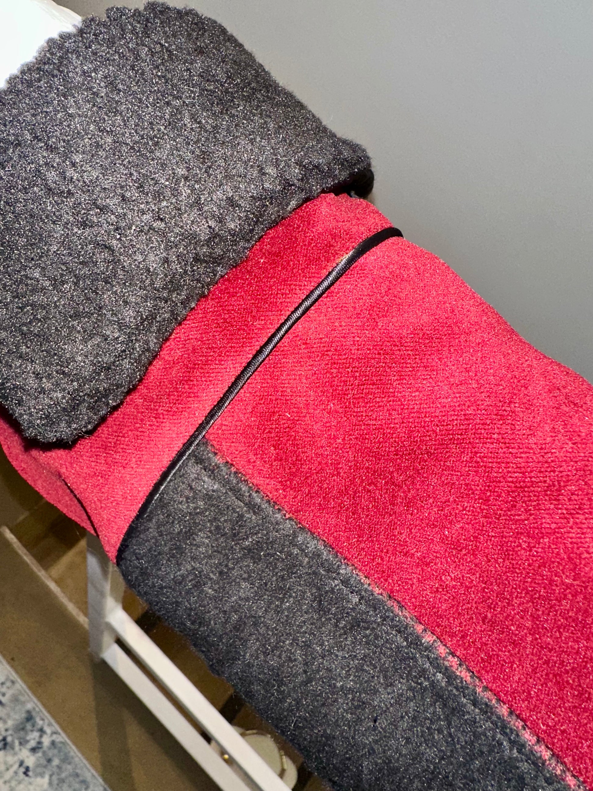 Manteau de Luxe pour Chien Bordeaux et Noir en Laine et Cachemire – Pièce Unique | Made in Italy Taille L